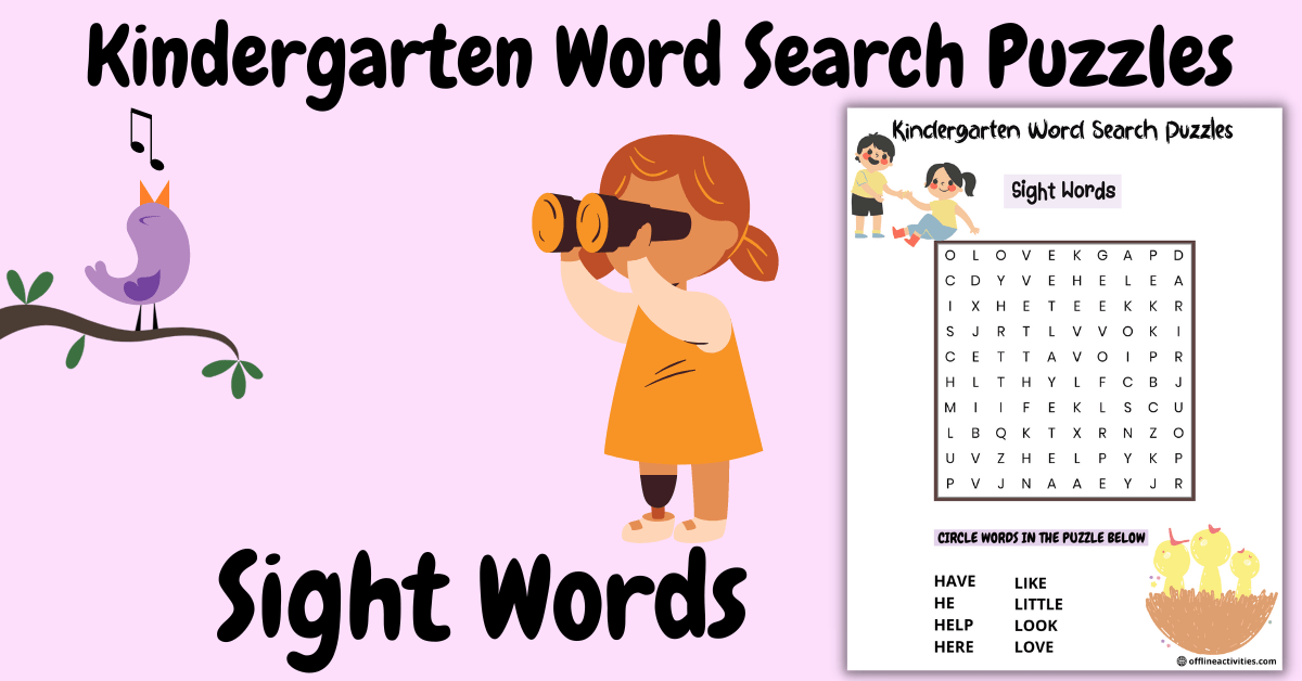 by: Milly LISAPosted on: September 16, 2022November 16, 2022 Word Search Download – Sight Words Spread the love Kindergarten students can develop their ability to notice patterns in words and learn new words with word search puzzles. These puzzles can help students become more comfortable with reading and writing sight words. Sight words are an important part of early literacy development, so these puzzles can be a valuable tool for kindergarten teachers. The 08 vocabulary words covered in this puzzle are: HAVE HE HELP HERE LIKE LITTLE LOOK LOVE Print Puzzle Table of Contents Toggle MORE PUZZLES FOR YOU:Word Find Search– Sight WordsKindergarten Word Search Puzzles – The VerbsPuzzle Find The Words – The Transport MORE PUZZLES FOR YOU: Word Find Search– Sight Words Kindergarten Word Search Puzzles – The Verbs Puzzle Find The Words – The Transport Spread the love
